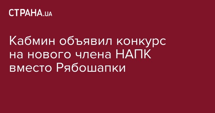 Кабинет министров объявил конкурс по избранию нового члена Нацагентства по предупреждению коррупции вместо уволенного Руслана Рябошапки. Об этом говорится в распоряжении правительства №437-р от 4 июля.