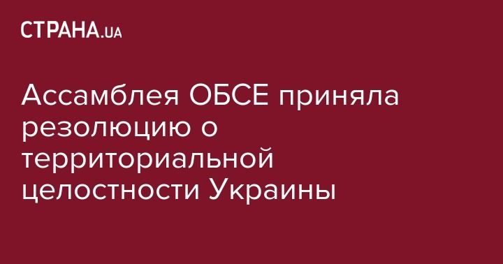 Сегодня парламентская ассамблея ОБСЕ в Минске приняла резолюцию Украины "Восстановление суверенитета и территориальной целостности Украины". Россия проголосовала против, пишет "Интерфакс".