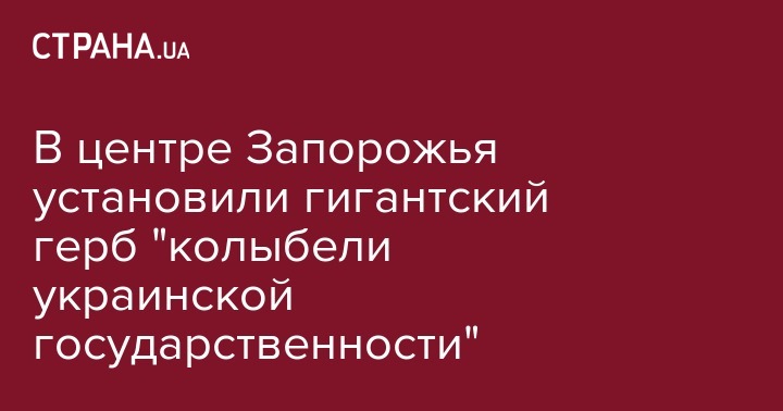 Сегодня в центре Запорожья появился огромный герб города с надписью "Запорожье - колыбель государственности Украины",  передает местный сайт 061.
