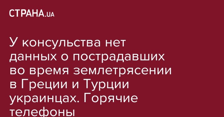 Департамент консульской службы МИД Украины в Twitter сообщил, что данные о пострадавших во время землетрясении в Греции и Турции украинцах не поступали.