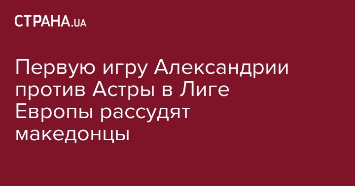 Первую игру Александрии против Астры в Лиге Европы рассудят македонцы