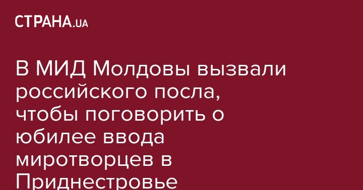 "Посол Российской Федерации в Республике Молдова Фарит Мухаметшин был вызван в МИД в связи с планируемыми мероприятиями, приуроченными к 25-летию начала миротворческой миссии в Приднестровском регионе Республики Молдова. Российскому послу, в частности, повторно было заявлено о том, что Молдова считает неуместным проведение в одностороннем порядке таких мероприятий с участием артистов и делегаций из РФ, подчеркивая, что эти действия могут нанести ущерб молдавско-российским отношениям", - говорится в сообщении внешнеполитического ведомства.