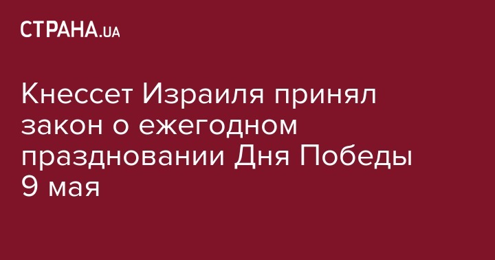 В июле 2017 депутаты Кнессета (парламента Израиля) единогласно приняли закон о государственном праздновании Дня Победы 9 мая. Об этом сообщают "РИА Новости".