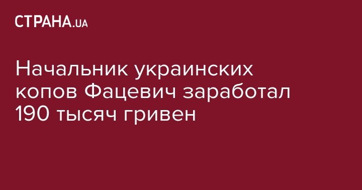 Заместитель главы Национальной полиции Украины, начальник патрульной полиции Александр Фацевич в декларации за 2015 год указал 189 757 гривен. Об этом сообщает идет речь в его декларации, опубликованной на сайте Национальной полиции Украины.