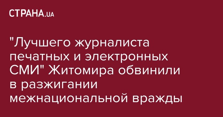 "Лучшего журналиста печатных и электронных СМИ" Житомира обвинили в разжигании межнациональной вражды