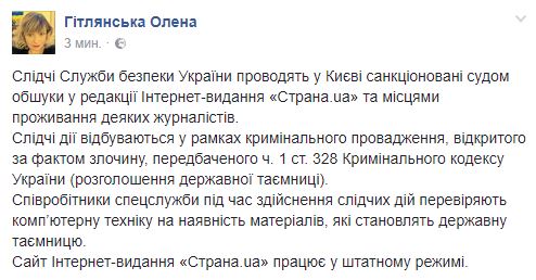 10:47 СБУ официально подтвердила, что ищет в "Стране" потерянную государственную тайну.