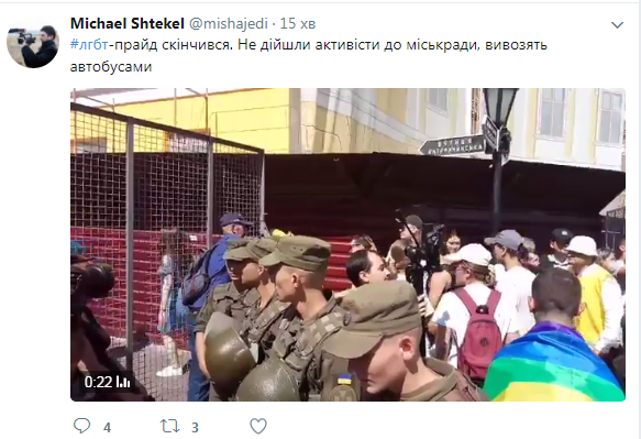 "ЛГБТ-прайд кончился. Не дошли активисты до горсовета, вывозят автобусами", - говорится в сообщении.