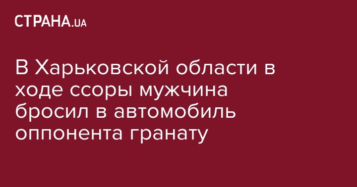 В Харьковской области в ходе ссоры один мужчина бросил гранату в салон автомобиля своего оппонента. Об этом сообщает пресс-служба ГУ НП в Харьковской области на странице в Facebook.