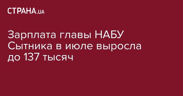 Зарплата директора Национального антикоррупционного бюро (НАБУ) Артема Сытника за июль составила 136 875 гривен. Об этом говорится в ответе НАБУ на запрос "Украинских новостей".