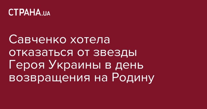 Савченко хотела отказаться от звезды Героя Украины в день возвращения на Родину