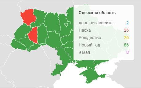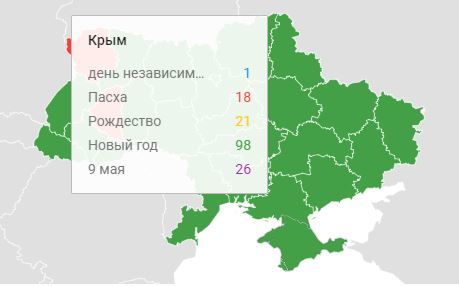 Мы сравнили популярность Дня независимости и перечисленных президентом праздников за 2016 год, добавив к общему списку 9 мая - День победы. В целом по Украине предпочтения разделились так: