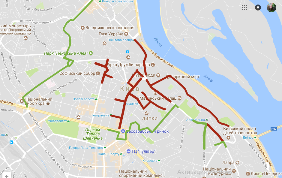 В День Независимости Украины, 24 августа, в Киеве из-за проведения праздничных мероприятий будет перекрыт ряд центральных улиц. На Google-картах появилась полная схема улиц, которые перекроют с самого утра, а также схема объезда через Подол.