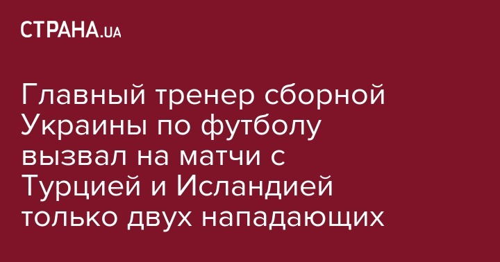 Главный тренер сборной Украины по футболу вызвал на матчи с Турцией и Исландией только двух нападающих