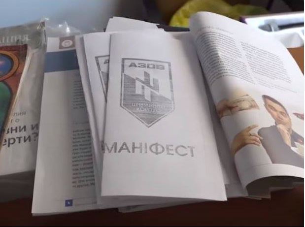 По данным "МГБ", в ходе осмотра помещений, принадлежащих религиозной организации в Луганске и Алчевске, обнаружены и изъяты "агитационные материалы, содержащие нацистскую символику и атрибутику, а также листовки с призывами к сотрудничеству со спецслужбами Украины".