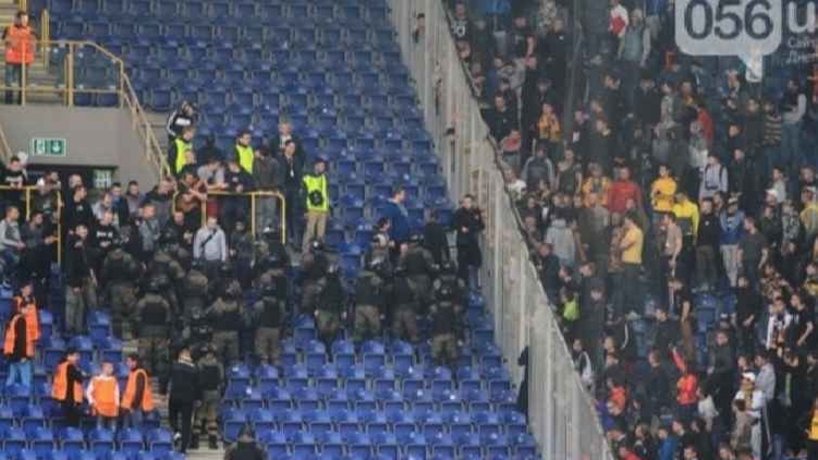 Во втором тайме в секторе болельщиков харьковского клуба подожгли дымовые шашки. После этого началась массовая драка с болельщиками "Днепра". Сразу разнять футбольных фанатов не удалось. Ситуацию под контроль взяли только после того, как на месте появились бойцы Национальной гвардии.