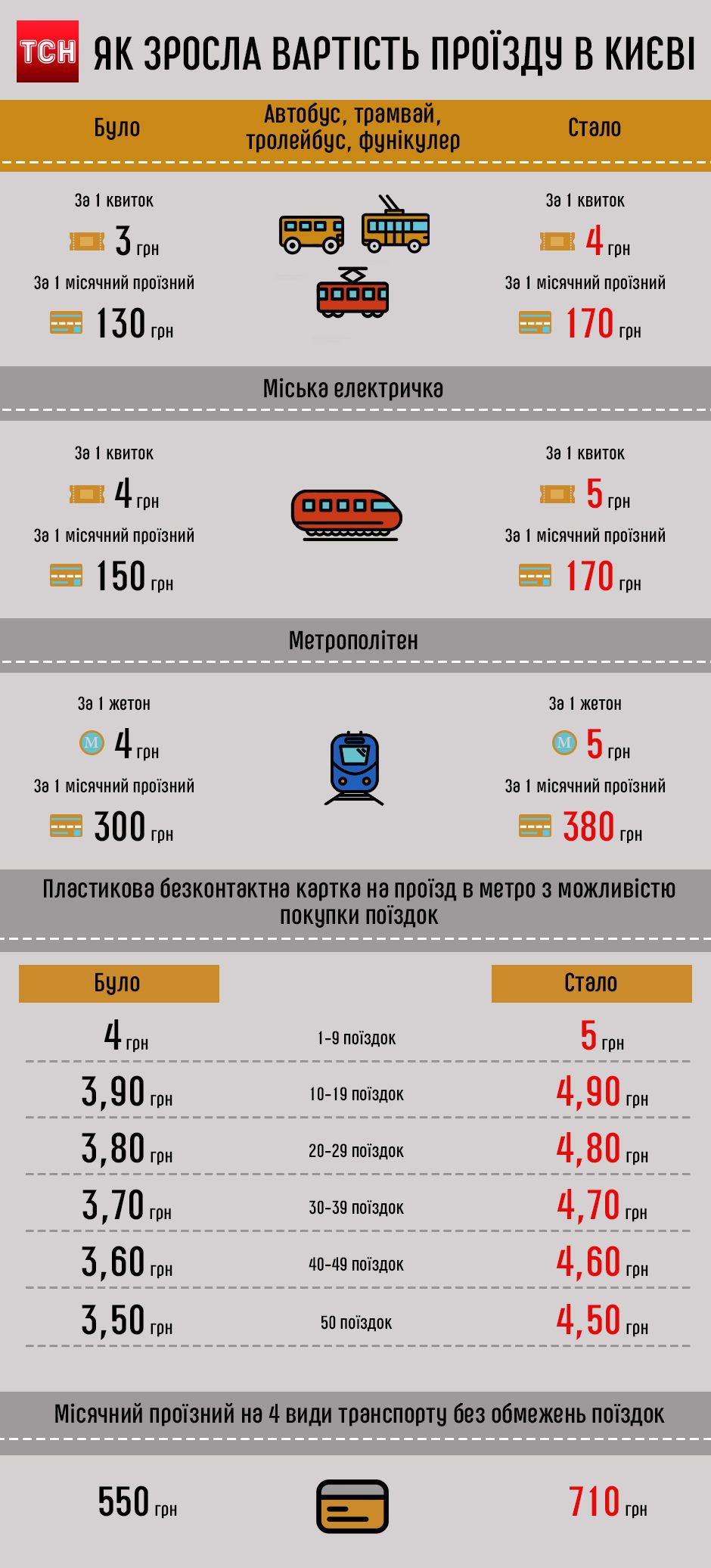 Также ТСН.ua опубликовал таблицу подорожания для проезда в общественном транспорте столицы.