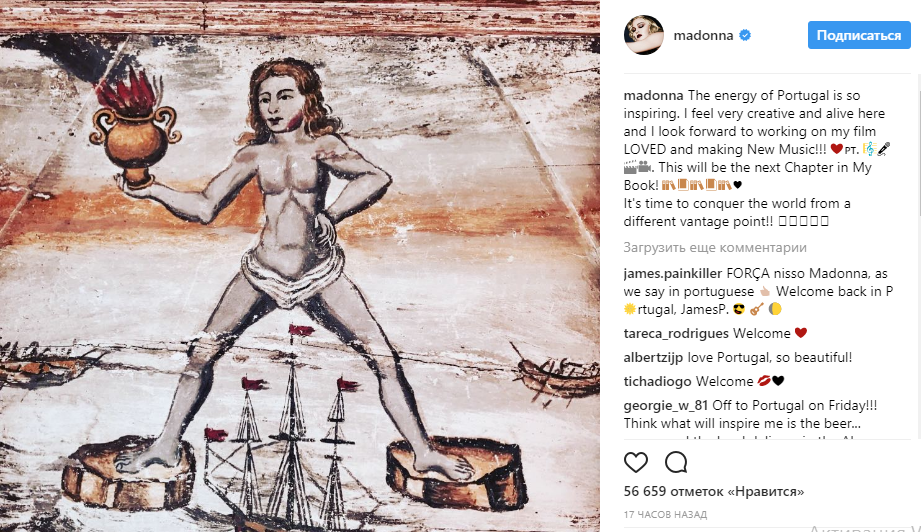 Также 59-летняя певица написала, что энергия Португалии вдохновляет ее.