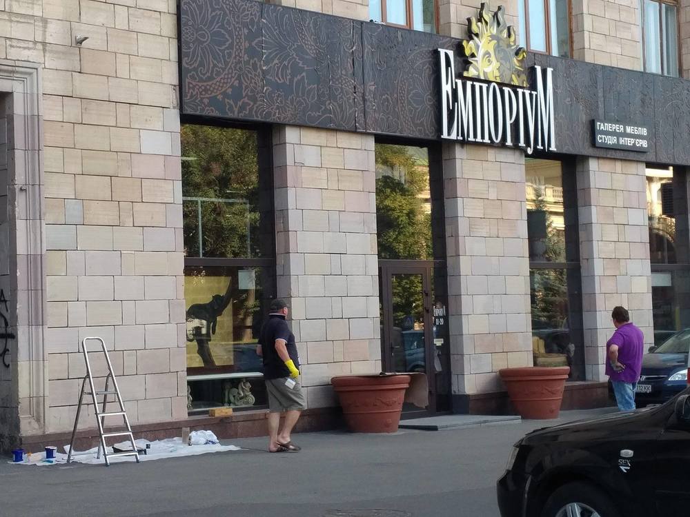 В Киеве с фасада магазина люкс-мебели "Эмпориум" на улице Грушевского, 4 исчезли знаменитые патриотические граффити, которые были нанесены во время Революции достоинства. Об этом сообщает журналист Татьяна Высоцкая на своей странице в Facebook.