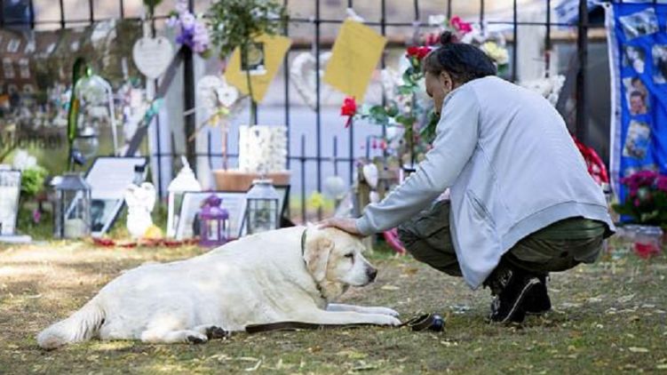 Золотистый лабрадор по кличке Эбби тоскует по своему хозяину и часто лежит там, где поклонники творчества Джорджа Майкла устроили народный мемориал.