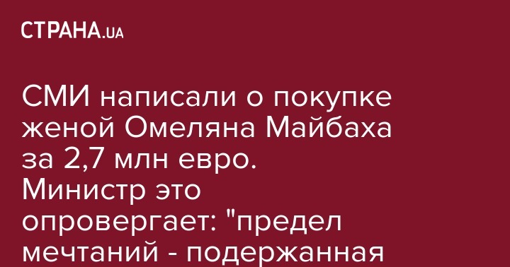 СМИ написали о покупке женой Омеляна Майбаха за 2,7 млн евро. Министр это опровергает: "предел мечтаний - подержанная Tesla"