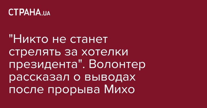 "Никто не станет стрелять за хотелки президента". Волонтер рассказал о выводах после прорыва Михо