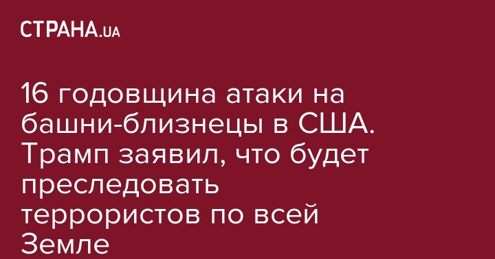 Президент США Дональд Трамп во время церемонии почтения памяти памяти жертв терактов 11 сентября 2001 года заявил, что террористам никогда не удастся запугать Америку и пообещал преследовать их где угодно на земном шаре.