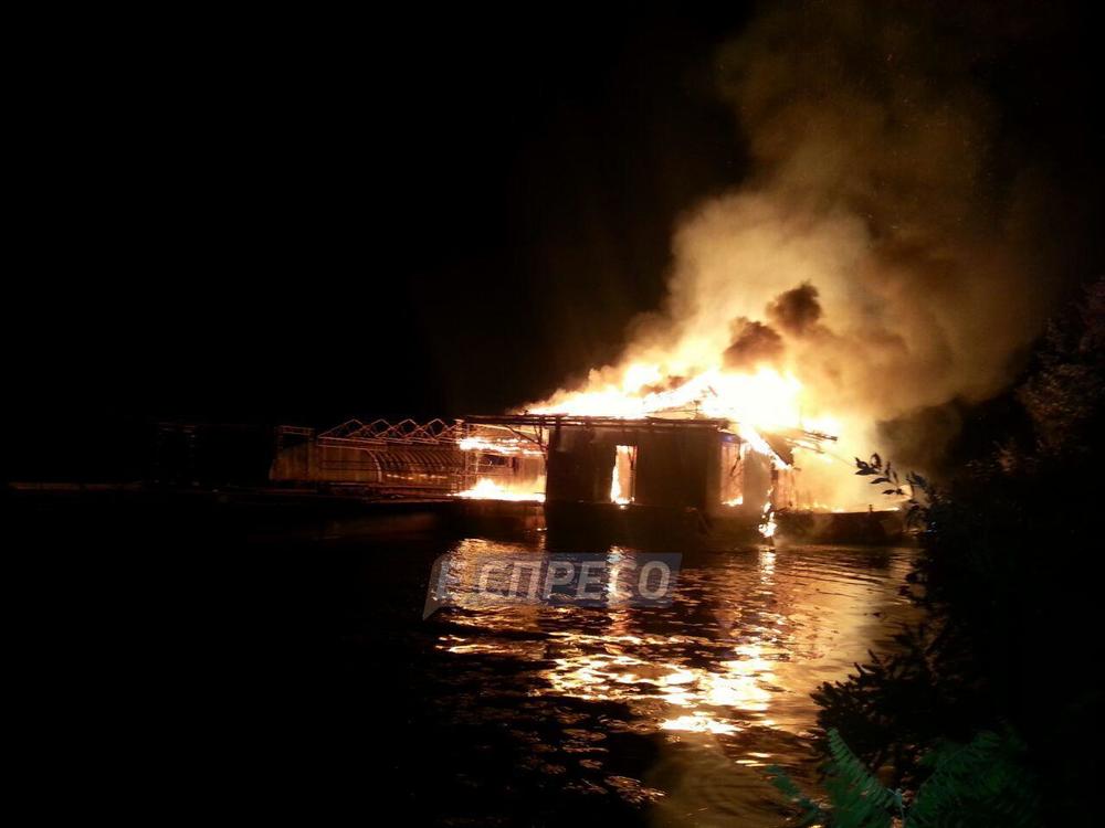 На Русановке ночью дотла сгорел плавучий ресторан