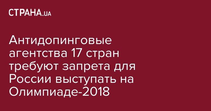 Антидопинговые агентства 17 стран требуют запрета для России выступать на Олимпиаде-2018
