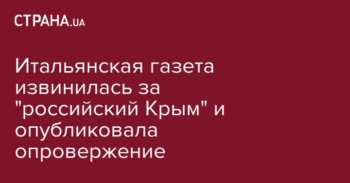 Ведущая спортивная газета Италии La Gazzetta dello Sport извинилась за обозначение на карте аннексированного Крыма российской территорией. Об этом сообщил посол Украины в Италии Евгений Перелыгин, передает "Европейская правда".