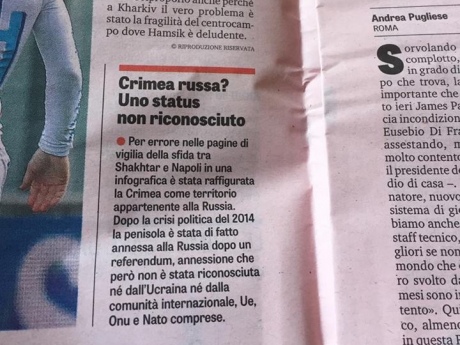 Напомним, что в Италии ведущая спортивная газета сделала Крым российским.