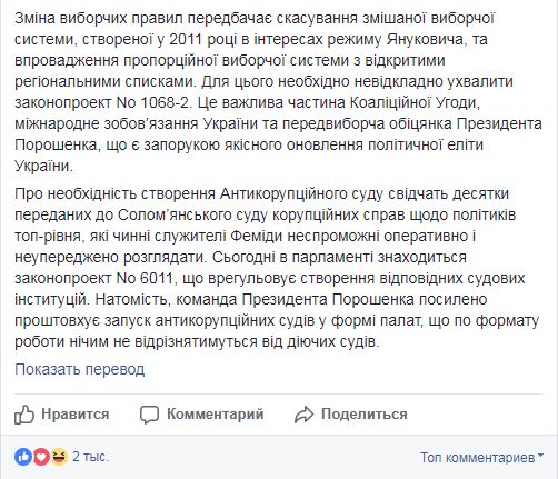 "20 сентября в 14:15 на Майдане Незавимисоти (около Монумента Независимости) будет провозглашено начало мобилизации на Всеукраинскую акцию в поддержку большой политической реформы — изменения избирательных правил, ограничения депутатской неприкосновенности и создания антикоррупционного суда. Акция пройдет 17 октября в столице и всех областных центрах Украины", - написал бывший журналист.