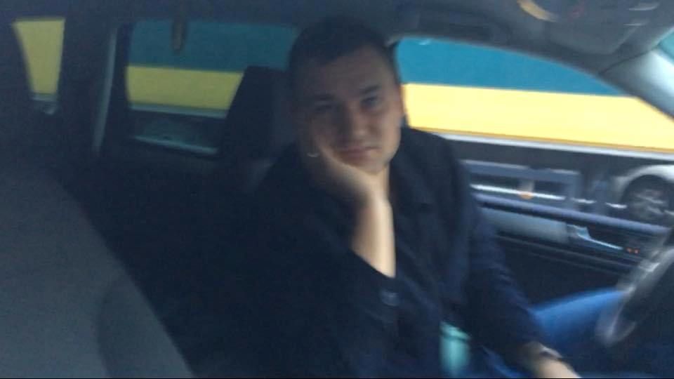 "Только что человек на этой машине избил меня за то что я его нецензурным словом ибо он давил пассажиров на трамвайных путях. Вызвал скорую и полицию", - написал он. Журналист опубликовал фото номеров и лица нападавшего.
