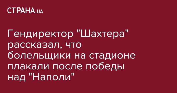 Гендиректор "Шахтера" рассказал, что болельщики на стадионе плакали после победы над "Наполи"