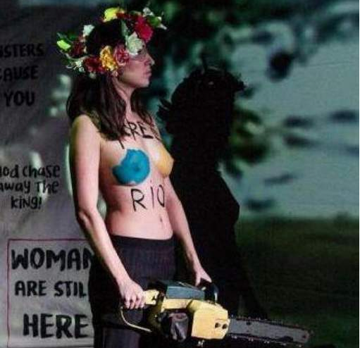 На вокзале в Бельгии появилась обнаженная активистка Femen с бензопилой