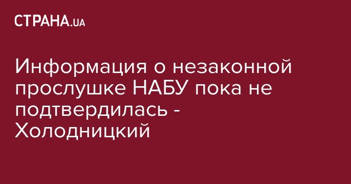 Глава Специализированной антикоррупционной прокуратуры (САП) Назар Холодницкий заявил, что информация о незаконной прослушке сотрудниками НАБУ пока не подтвердилась. Об этом сообщает "Украинская правда".