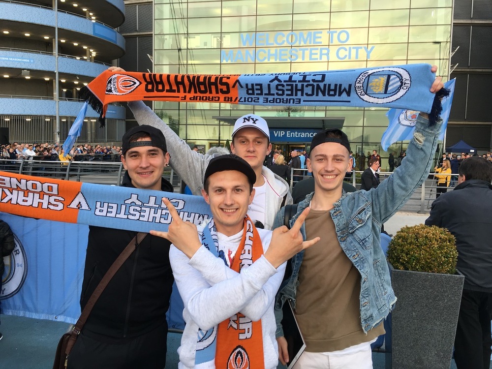Двадцатилетний Макс (самый дальний справа, уроженец Тернополя): "Я думаю, что "Сити" победит, но надеюсь, что "Шахтер", хотя бы хорошо сыграет", - сказал он журналистам перед матчем.