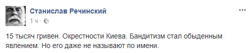 Журналист Станислав Речинский: "15 тысяч гривен. Окрестности Киева. Бандитизм стал обыденным явлением. Но его даже не называют по имени".