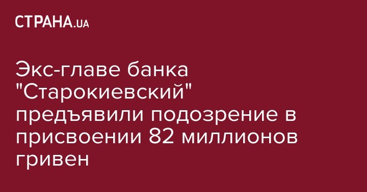 Экс-главе банка "Старокиевский" предъявили подозрение в присвоении 82 миллионов гривен