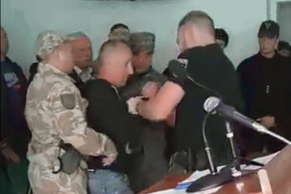 Полицейские мгновенно заблокировали подсудимого и "вытащили" в отдельную комнату, где "накрыли" его своими телами.