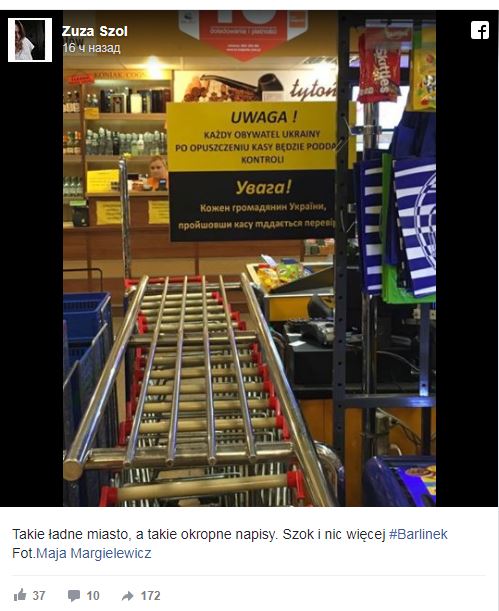 В польском городе Барлинек владелец магазина Bimex Ежи Битель повесил табличку, призывающую проверять каждого гражданина Украины на кассе. Фото с табличкой быстро распространилось по соцсетям, передает WP.Finanse.
