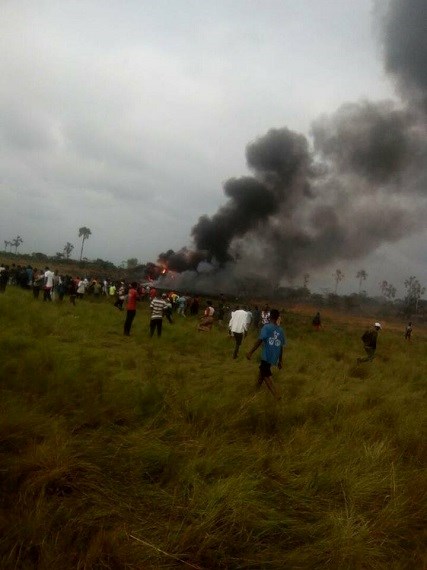 Опубликованы первые фото с места падения военного грузового самолета в столице Конго Киншасе, в результате которого могли погибнуть трое украинцев. Снимки размещены странице Air Disasters в Twitter.