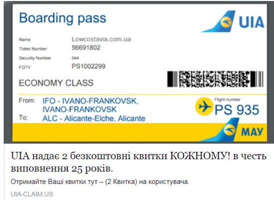 "Сегодня в интернете была запущена вирусная, ложная реклама о том, что авиакомпания МАУ разыгрывает бесплатные билеты через сайт uia-claim.us. Информируем вас о том, что информация абсолютно не соответствует действительности, а данный ресурс никоим образом не связан с авиакомпанией МАУ", - заявили в авиакомпании.
