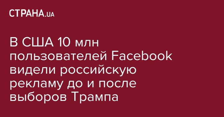 Приблизительно 10 миллионов жителей США видели российскую рекламу по оценкам социальной сети Facebook. Об этом сообщает УНН.