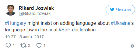 "Венгрия может настаивать на добавлении языкового вопроса закона "Об образовании в Украине" в финальную декларацию саммита" Восточного партнерства ", - написал он.