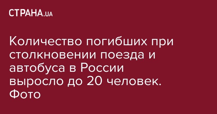 Число жертв столкновения поезда и автобуса на железнодорожном переезде во Владимирской области России выросло до 20 человек, среди них трое детей. Об этом со ссылкой на источники в медицинских кругах сообщает "Интерфакс".
