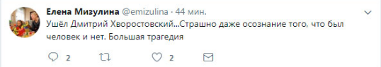 Российский сенатор Елена Мизулина, которая одна из первых сообщила о смерти оперного певца, удалила из Twitter эту информацию.
