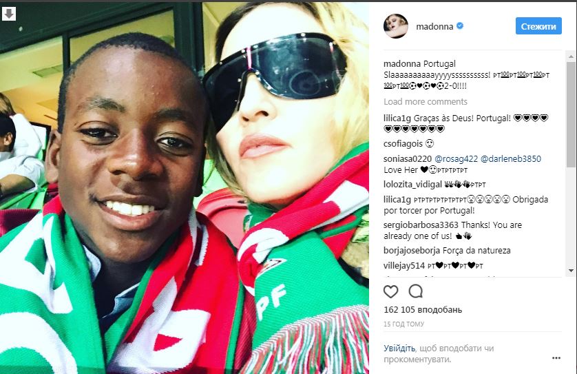 Мадонна с приемным сыном болели на матче Португалия - Швейцария