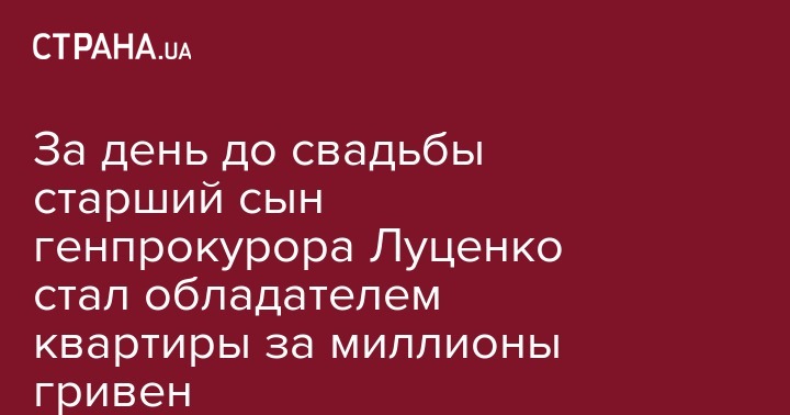 За день до свадьбы старший сын генпрокурора Луценко стал обладателем квартиры за миллионы гривен