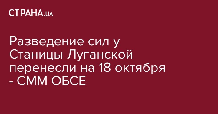 "Согласно Рамочному решению Трехсторонней контактной группы о разведении сил и средств, для начала процесса разведения режим тишины на участке должен быть выдержан семь суток. Однако 9 октября украинской стороной СЦКК был зафиксирован случай нарушения режима прекращения огня со стороны НЗФ ОРЛО, о чем безотлагательно проинформировали СММ ОБСЕ. Теперь возможная дата разведения сторон - 18 октября 2017", - говорится в сообщении.