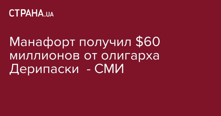 Пол Манафорт, бывший руководитель кампании президента США Дональда Трампа получил от российского олигарха Олега Дерипаски за последние 10 лет почти $60 млн. Об этом сообщает NBC news.